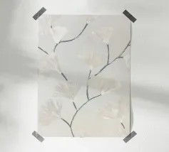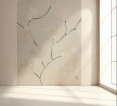 L'elegante illustrazione di foglie di ginkgo in colori pastello combina bellezza botanica e design minimalista, perfetto per una decorazione naturale armoniosa.