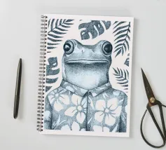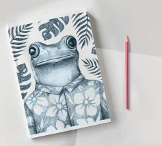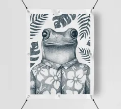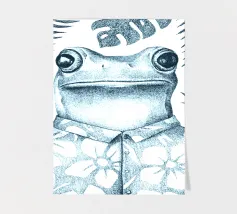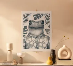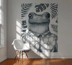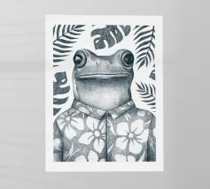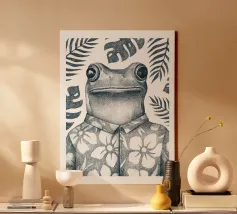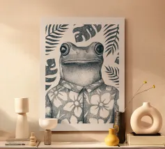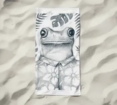 Un'allegra rana che si gode le calde giornate estive, circondata dalla vibrante essenza della natura. Perfetto per chi ama i disegni giocosi e stravaganti che catturano lo spirito della stagione.