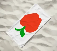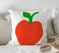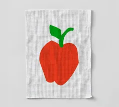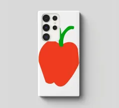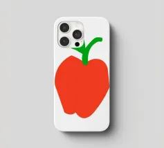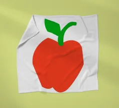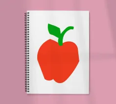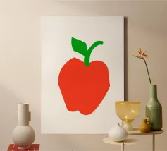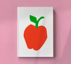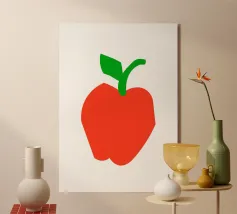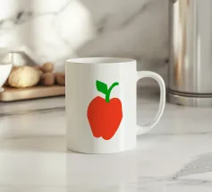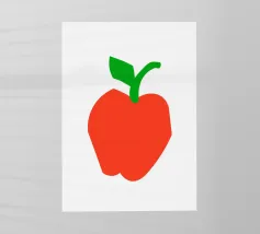 Una raffigurazione semplice e decisa di una mela rossa con gambo e foglia verdi, su sfondo bianco. Il design utilizza forme basilari e colori solidi per trasmettere l'immagine.