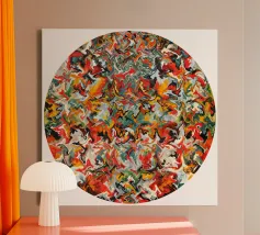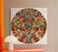Ispirato alla psichedelia degli anni '60, al surrealismo e alla fluidità delle lampade di lava, crea un effetto disorientante e ipnotico, perfetto per album art, immagini di festival o decorazioni murali stravolgenti. Ispirato al simbolismo spirituale, questo pezzo funziona ugualmente bene come arte da parete, stampa tessile o risorsa di design digitale, offrendo un tocco moderno all'antica armonia geometrica. Stampa artistica con motivi decorativi colorati. Poster d'arte mandala simmetrico multicolore. Vibrazioni artistiche spirituali e gioiose. Buone vibrazioni e colori amorevoli. Disegno geometrico astratto, composizione moderna e vibrante che gioca con la simmetria e il minimalismo.