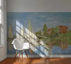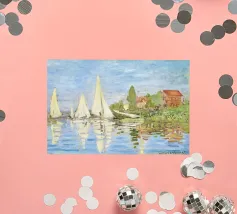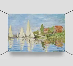 Le "Regate ad Argenteuil" (1872) di Claude Monet è una luminosa scena impressionista che cattura la gioia e il movimento delle barche a vela che scivolano sulla Senna. Dipinta durante il soggiorno di Monet ad Argenteuil, questa vibrante veduta fluviale mescola l'acqua scintillante, la dolcezza del cielo e l'energia dinamica di una regata estiva. La composizione riflette il fascino di Monet per la luce, il colore e il tempo libero nella campagna francese. Perfetta per i collezionisti di arte impressionista, di decorazioni murali nautiche e di paesaggi francesi classici, quest'opera d'arte conferisce eleganza, movimento e fascino storico a qualsiasi interno.