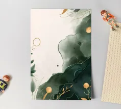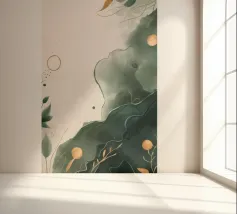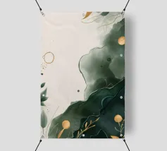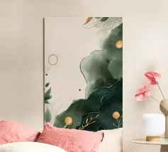 Inchiostri verdi e bolle d'oro si sollevano in riccioli organici, come se la natura respirasse sulla carta.