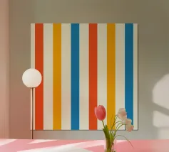 Sperimentate il calore dell'estate con questo energico disegno a righe verticali di colore arancione, giallo e blu. Ispirate all'estetica retrò degli anni '60, le strisce Retro 60s Vibrant Summer Vibes conferiscono un fascino giocoso ed eclettico all'arredamento della casa, agli accessori di moda o ai progetti di artigianato. Luminose, audaci e nostalgiche, perfette per creare interni allegri e vivaci.