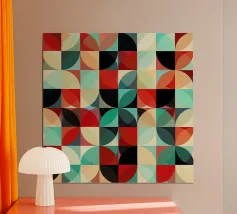 Questa vibrante opera d'arte geometrica emana calore e raffinatezza, rendendola un centrotavola perfetto per qualsiasi spazio moderno. Il design è un gioco ipnotico di motivi circolari sovrapposti, audace ma armonioso nell'uso di rossi ricchi, verdi tranquillizzanti, beige terrosi e neri profondi. La simmetria ripetitiva delle forme crea un ritmo dinamico, mentre gli strati traslucidi aggiungono profondità e curiosità. Ideale per gli amanti dell'arte che apprezzano l'estetica moderna di metà secolo o l'astrazione contemporanea, questa composizione apporta energia e raffinatezza alla casa o all'ufficio. Non è solo arte, è una statuetta.
