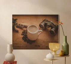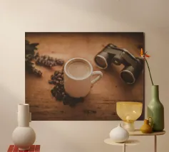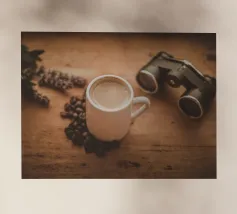 Assaporate il fascino rustico di un bar italiano con una tazza di espresso, circondati dai toni della terra e dalla delicata lavanda.