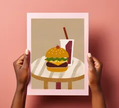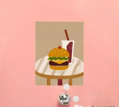 Pizza dal design retrò e pop: Godetevi la delizia della pizza avvolta in un colorato ed elegante design retro pop!