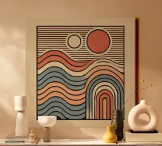 Il design "Retro Waves" combina un design minimalista con un tocco di nostalgia. Ispirato all'estetica degli anni '70 e '80, offre linee morbide e curve che ricordano i tramonti, gli ampi orizzonti e le calme onde dell'oceano. I colori tenui e contrastanti, combinati con forme geometriche semplici, creano un effetto rilassante ma potente.