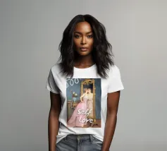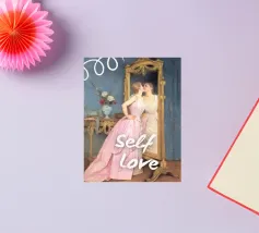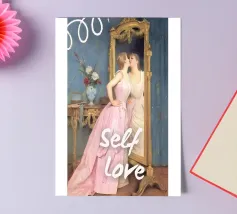Abbracciate la profonda accettazione di voi stessi con "Self Love Reflection". Questa accattivante stampa pop art offre una potente rivisitazione di un dipinto classico, con una donna elegante in un fluente abito rosa che bacia teneramente il proprio riflesso in uno specchio dorato. Il testo bianco e deciso "Self Love" sovrasta l'immagine, trasformando questa scena senza tempo in una profonda dichiarazione di affermazione personale e di pace interiore. Le sottili linee bianche di scarabocchio in alto aggiungono un tocco artistico contemporaneo. Perfetto per celebrare la cura di sé e l'empowerment in qualsiasi interno moderno. Realizzato con un'eccezionale risoluzione di 7000x5000 pixel.
