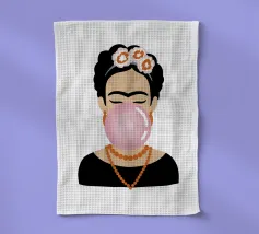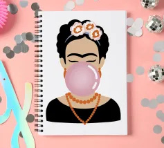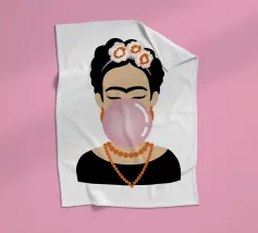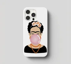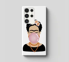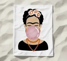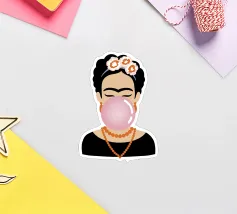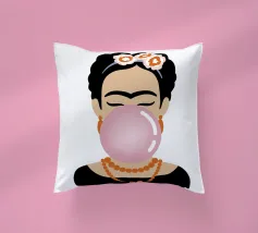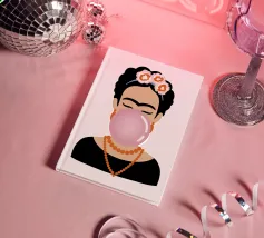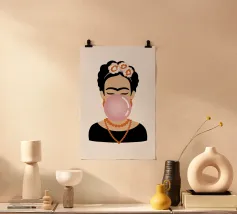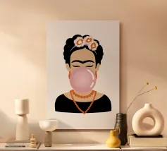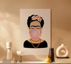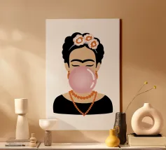 Ritratto moderno e retrò di Frida Kahlo con una grande gomma da masticare rosa