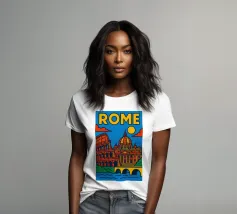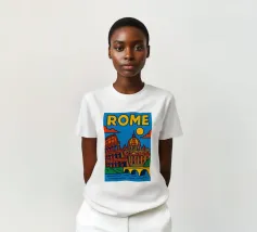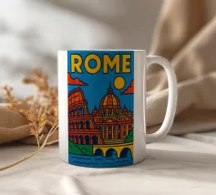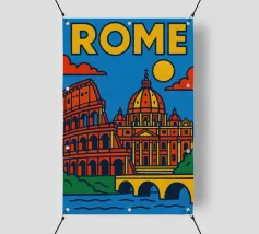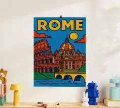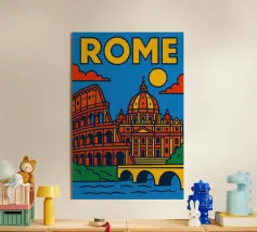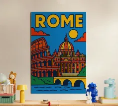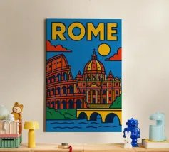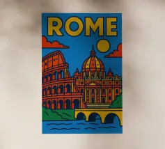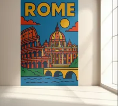 Fate un viaggio nel tempo con questo vivace poster di Roma! Tra il maestoso Colosseo, lo splendore del Vaticano e il dolce Tevere, questa creazione cattura tutta l'antica grandezza e il fascino solare della capitale italiana.