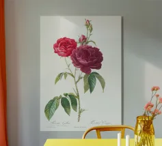 "Rosa francese viola (Rosa gallica purpuro-violacea magna)" da Les Roses (1817-1824) di Pierre-Joseph Redouté è un'illustrazione botanica d'epoca mozzafiato. Questo capolavoro mostra una rosa viola riccamente colorata in piena fioritura, con petali vellutati, ombreggiature delicate e fogliame finemente dettagliato. L'elegante tecnica dell'acquerello di Redouté mette in risalto la bellezza naturale del fiore, rendendolo un pezzo senza tempo per gli amanti dell'arte floreale, dell'arredamento vintage e delle collezioni botaniche. Perfetto per stampe, tessuti e interni ispirati alla natura.