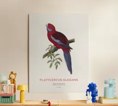 Il Platycercus elegans è un pappagallo australiano di medie dimensioni, lungo 36 cm, di cui gran parte è costituita dalla coda. Esistono sette sottospecie, tre delle quali sono effettivamente cremisi.