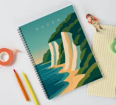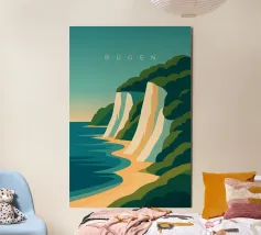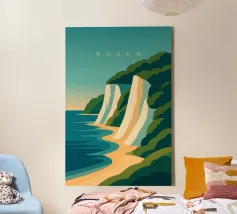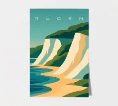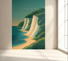 Design minimalista e decorativo per le vacanze estive sul Mar Baltico, con una bella spiaggia e le famose scogliere di gesso bianco della costa baltica di Rügen. Design per le vacanze estive per tutti coloro che amano andare in vacanza sulla costa baltica tedesca o sull'isola di Rügen.