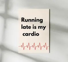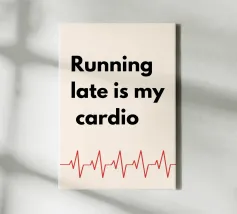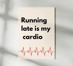 Chi ha bisogno della palestra quando la vita ti fa fare tardi? Questa stampa divertente ed elegante è perfetta per tutti coloro che abbracciano l'arte di essere sempre in ritardo (e la considerano il loro allenamento quotidiano!). Che sia per l'ufficio, per la casa o come regalo esilarante per un amico perennemente in ritardo, questa stampa tipografica aggiunge un tocco giocoso e simpatico a qualsiasi spazio. Minimalista, moderna e piena di personalità, proprio come voi! 💁‍♀️