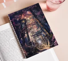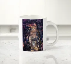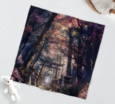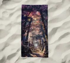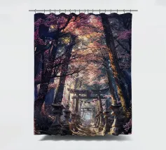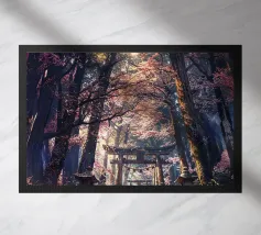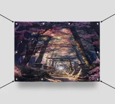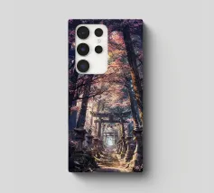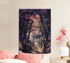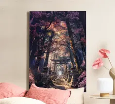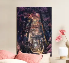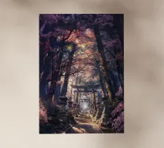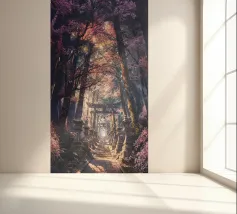 Salite i gradini di pietra per raggiungere un santuario di fiori di sakura, dove un antico santuario si erge in mezzo alla foresta, abbracciato dal bagliore del sole.