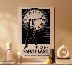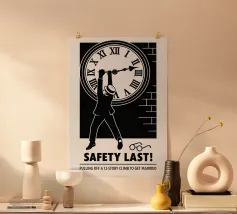 Stampa Safety Last, Poster cinematografico alternativo, Bianco e nero, Arte murale minimale, Harold Lloyd, Stampe di qualità, Regalo per gli amanti del cinema, Cinefilia