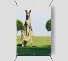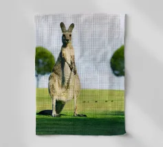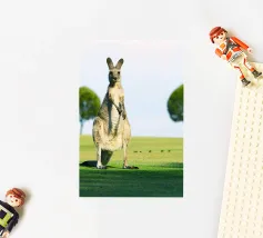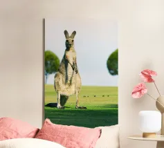Il canguro in piedi sull'erba sembrava così tranquillo. Il suo corpo robusto e la sua liscia pelliccia marrone risaltavano sotto la luce del sole. Le sue orecchie erano all'erta, i suoi occhi neri e rotondi scintillavano, intelligenti e curiosi. Le sue forti zampe posteriori si sostenevano a terra, mentre la lunga e robusta coda teneva il corpo in equilibrio. Tutt'intorno, l'erba verde si estendeva all'infinito; alcune leggere brezze soffiavano, facendo ondeggiare l'erba, creando una scena naturale pacifica e vivace al tempo stesso.
