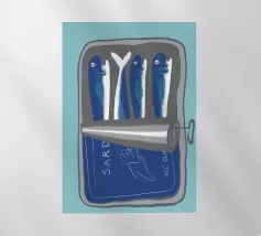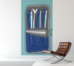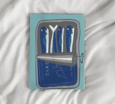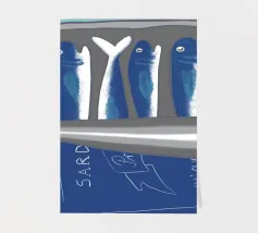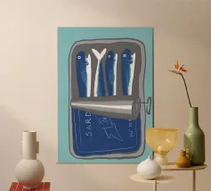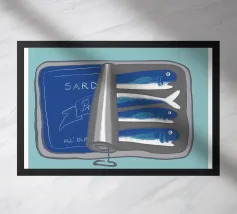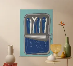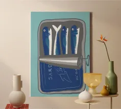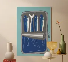 Sarde in scatola con sfondo blu, perfette per chi ama le atmosfere estive e i pesci.