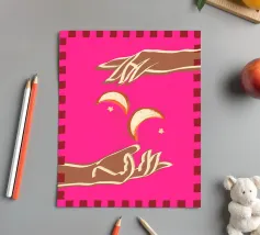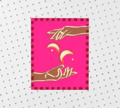 Celestial Exchange - A Couple Of Moons eclettico romanticismo amore romantico rosa caldo bordo rustico disegnato a mano mani persone umane coppia di valentini spazio stelle pop di colore in grassetto