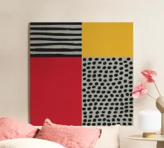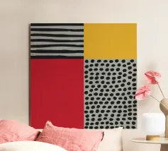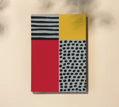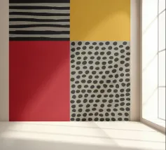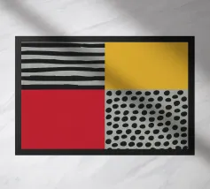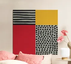Design nordico scandinavo. Questo design combina la chiarezza scandinava con l'astrazione moderna. Forme chiare e geometriche incontrano una palette di colori vivaci come il rosso, il blu e l'arancione, creando un gioco armonioso di struttura e dinamismo. Minimalista ma espressivo, aggiunge un tocco artistico e contemporaneo a qualsiasi ambiente o prodotto.