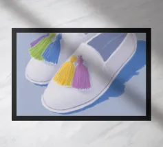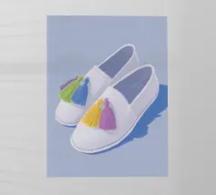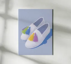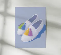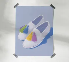 Queste scarpe alla moda dai colori pastello in azzurro, viola e giallo affascinano per il loro design semplice. Impreziosite da piccoli ciuffi, offrono un look affascinante e rilassato, perfetto per ogni occasione.