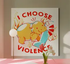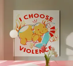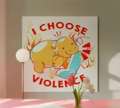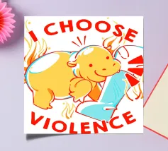 Un adorabile ippopotamo sorridente morde una zampa in mezzo a fiamme vivaci, con la scritta "I Choose Violence". Questo disegno cattura il caos e la simpatia del moo deng in modo esilarante e audace. Perfetto per gli amanti degli ippopotami, i fan della commedia e tutti coloro che amano uno stile divertente e stravagante.