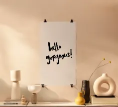 Semplice e pulito: scritta a pennello "Hello gorgeous" in bianco e nero