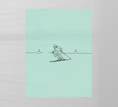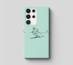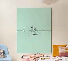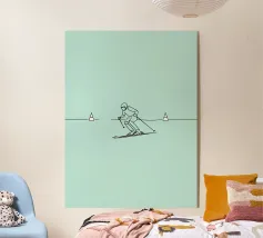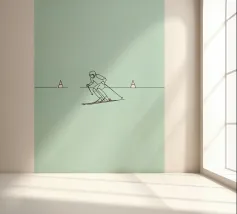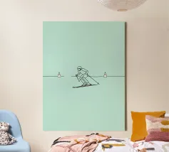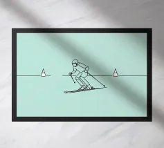 Line art minimalista di uno sciatore in movimento, che cattura velocità, agilità e avventura invernale. Perfetto per gli appassionati di sci e per l'arredamento degli sport alpini.