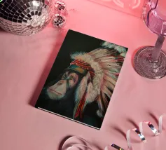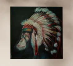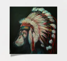 Questo scimpanzé dall'aspetto triste ha capito la minaccia che l'uomo rappresenta per le specie animali. Quest'opera d'arte è una satira dello scempio che stiamo facendo del nostro pianeta.