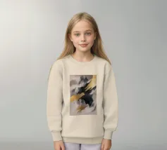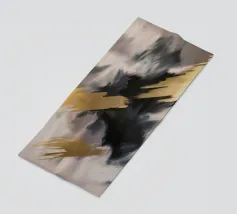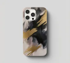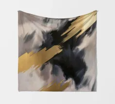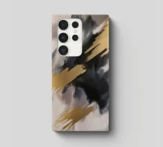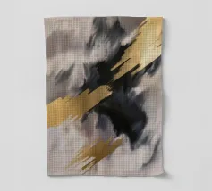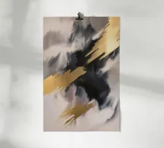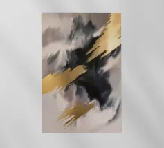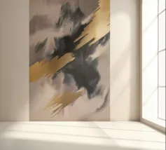 Furiosi colpi d'oro tagliano il taupe fumoso in un'esplosione di fuoco pittorico.