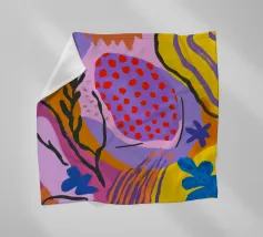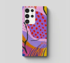I rosa fusi e i viola intensi fanno da sfondo a forme di fogliame audaci in un'eruzione floreale surreale.