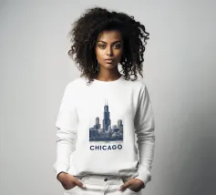 Questo poster mostra l'imponente skyline di Chicago nel caratteristico stile lino print, con la dominante Willis Tower al centro e il lago Michigan in primo piano. Perfetto per gli amanti dell'architettura americana, dell'estetica dello skyline e dei classici poster cittadini. Ideale per soggiorni, uffici o pareti creative dal sapore urbano.