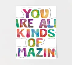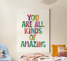 Ravvivate il vostro spazio e rafforzate la vostra fiducia in voi stessi con questa stampa tipografica edificante. La frase "You Are All Kinds of Amazing" prende vita in un vivace acquerello arcobaleno dipinto a mano su uno sfondo bianco. Questo pezzo accattivante serve a ricordare le vostre qualità e potenzialità uniche. Perfetta per aggiungere un tocco di positività a qualsiasi ambiente, dalla camera da letto all'ufficio di casa, questa colorata opera d'arte è sicura di ispirare ed elevare. Lasciate che questa stampa allegra celebri ogni giorno la vostra straordinarietà.