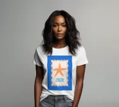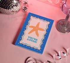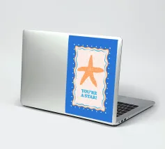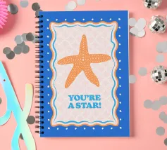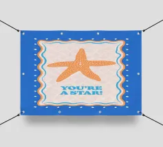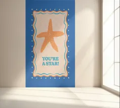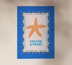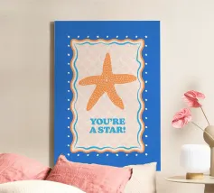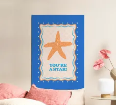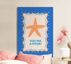 Stella marina arancione con cornice decorativa su sfondo blu cobalto. Con il testo Your A Star! Perfetto per dare alla vostra stanza un'atmosfera da spiaggia.