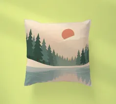 Una tranquilla scena lacustre invernale con riflessi sempreverdi e cieli tenui e pastello. Un'opera d'arte rilassante e d'atmosfera, ispirata alla natura scandinava e alla quiete invernale.