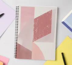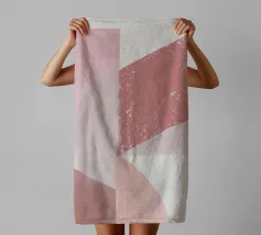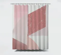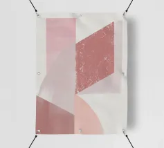 Forme geometriche si sovrappongono in varie tonalità di rosa, creando un'armoniosa composizione astratta. Il gioco di forme e colori dà un senso di profondità e movimento.