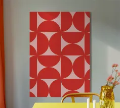 Questa audace stampa d'arte è caratterizzata da forme nitide in rosa e rosso, che richiamano un'estetica retrò di ispirazione anni '70 con un tocco moderno. I bordi geometrici e la palette di colori vivaci creano un contrasto accattivante, perfetto per aggiungere un tocco tagliente e nostalgico al vostro arredamento. Se amate la combinazione di vibrazioni vintage e stile contemporaneo, questa stampa sarà il pezzo forte di ogni stanza.