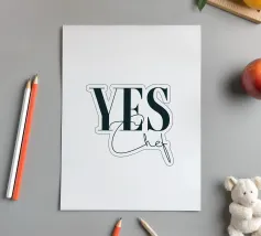 Per gli amanti della cucina: Design "Yes Chef"! Questa tipografia minimalista ed elegante è perfetta per lo chef che è in voi. Decorate la vostra cucina, le magliette, le tazze o qualsiasi altra cosa vogliate con questo design unico ed elegante.
