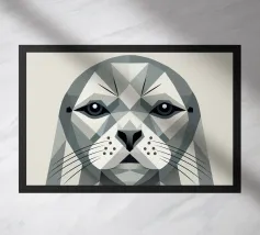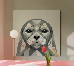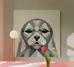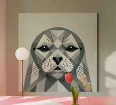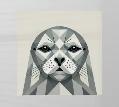 Una foca stilizzata dalle forme geometriche che riflette l'eleganza e la tranquillità di questo animale con linee chiare e toni grigi tenui. Un'opera d'arte moderna per gli amanti degli animali e del minimalismo. Raffigurazione geometrica di una foca Linee chiare e toni grigi armoniosi Simboleggia la calma, la forza e la bellezza della natura Design moderno con elementi minimalisti Ideale per gli amanti dell'arte che apprezzano le rappresentazioni di animali