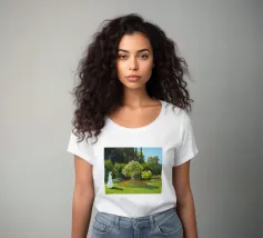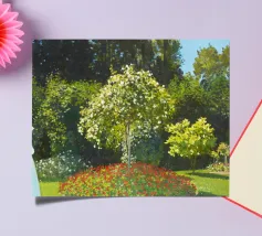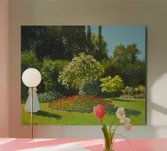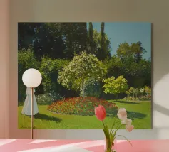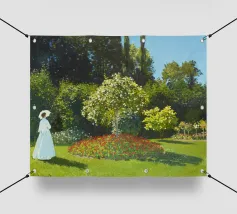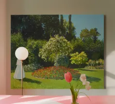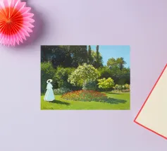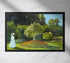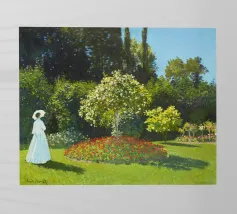La "Signora in giardino" (1867) di Claude Monet è un affascinante dipinto dei primi anni dell'Impressionismo che mostra la scena serena di una donna che passeggia in un giardino rigoglioso e soleggiato. Le delicate pennellate e i colori vivaci di Monet evidenziano il gioco di luci e ombre sul fogliame e sulla figura, catturando un tranquillo momento di svago e bellezza naturale. Quest'opera senza tempo esemplifica lo stile emergente di Monet e il suo amore per le scene all'aperto. Perfetto per i collezionisti di arte impressionista, paesaggi di giardini e dipinti francesi del XIX secolo, questo pezzo aggiunge fascino, eleganza e un tocco di tranquillità al quadro.