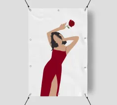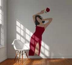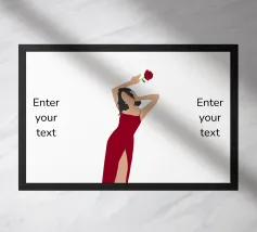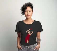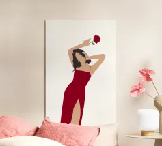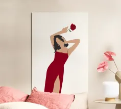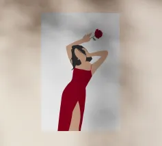 L'espressione della donna è serena ma fiduciosa e riflette un profondo legame con la rosa che tiene in mano, emblema della sua femminilità e della sua resistenza. Il gioco di luci e ombre aggiunge profondità alla composizione, evidenziando gli intricati dettagli dell'abbigliamento della donna e i morbidi petali del fiore. Questo pezzo invita lo spettatore a esplorare i temi dell'amore, dell'emancipazione e della bellezza dell'espressione di sé, rendendolo un'aggiunta perfetta a qualsiasi collezione che celebri la forza e l'eleganza della femminilità.