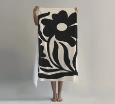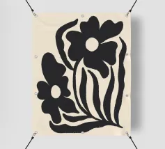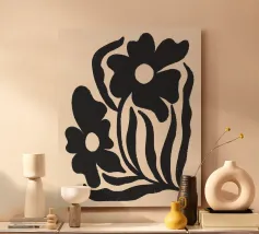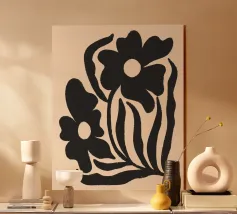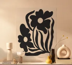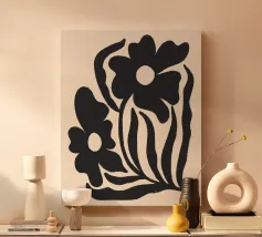 Una splendida opera d'arte minimalista con sagome di fiori neri strutturati su un caldo sfondo neutro. Questa moderna stampa botanica combina forme organiche con una sottile texture rustica, perfetta per interni contemporanei, boho o ispirati alla natura. Aggiunge profondità e carattere a qualsiasi spazio accogliente o minimalista.