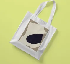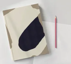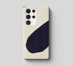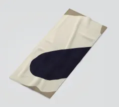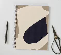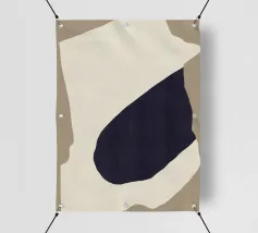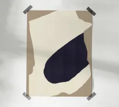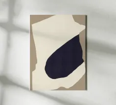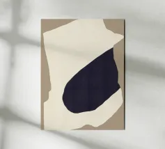 Forme astratte creano una composizione di grande effetto, con una grande forma irregolare scura incastonata in un'area beige chiaro su uno sfondo marrone tenue. La semplicità e il contrasto tra i colori enfatizzano le forme e le linee organiche.