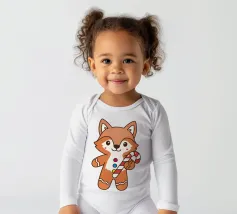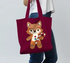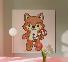 Simpatica volpe di pan di zenzero con bastoncini di zucchero colorati in un dolce stile natalizio. Perfetto per il Natale, l'inverno e tutti coloro che amano i motivi giocosi e accoglienti.