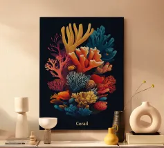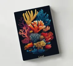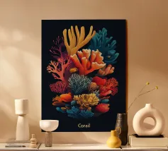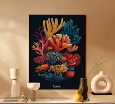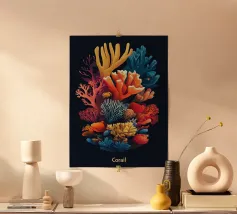 Immergetevi nelle affascinanti profondità dell'oceano con questa straordinaria opera d'arte. Una maestosa composizione di coralli dai colori vivaci - dal rosso intenso al turchese brillante e alle calde tonalità dell'oro - danza su uno sfondo nero e inchiostro. Ogni ramo e texture è reso con straordinaria precisione, creando un'atmosfera lussureggiante e rilassante. Questo pezzo unico trasformerà il vostro spazio in un portale verso le meraviglie sottomarine, portando un tocco di naturale raffinatezza alla vostra casa.