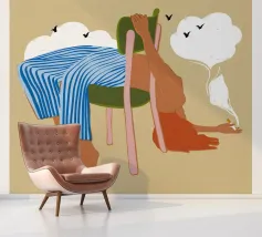 Smoking Up Clouds Quirky Weekend Vibes Hippie Boho Pajamas Nude Concept