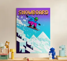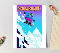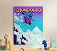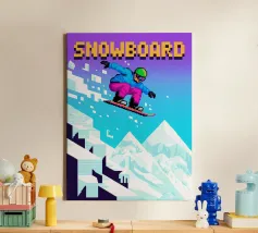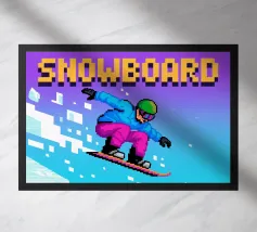 Questo disegno cattura l'intensità dello snowboard in un universo grafico pixel-art ispirato ai videogiochi retrò. Un elegante pilota sfreccia su una montagna innevata, combinando velocità, divertimento e pixel brillanti. Perfetto per gli appassionati di sport invernali, emozioni e cultura del gioco. La miscela perfetta di montagne, scivolate e nostalgia da sala giochi. Un'immagine dinamica e invernale per chi ama l'adrenalina in stile 8-bit.