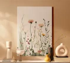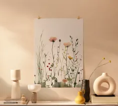 Una dolce danza di fiori di prato in acquerello: questo poster cattura la tranquilla bellezza della natura in modo meravigliosamente leggero. Piante e steli delicati sbocciano in delicate tonalità di rosa, giallo e verde su uno sfondo chiaro. Ideale per interni boho, naturali o scandi, "Wild Whisper" dona tranquillità, naturalezza e uno stato d'animo romantico alla vostra parete.