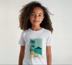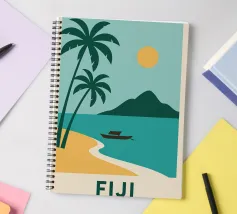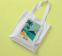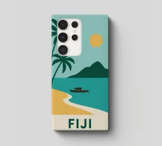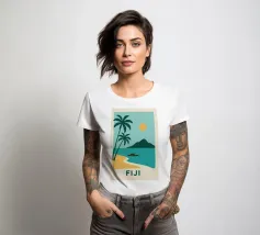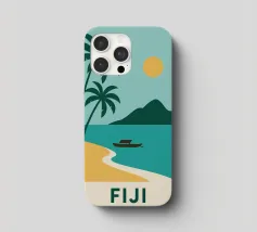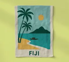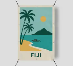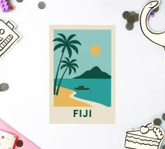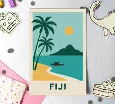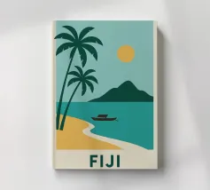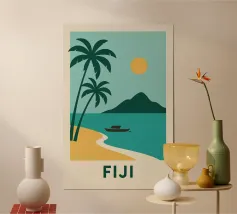 Una spiaggia dorata, palme perfette e un orizzonte infinito: questo poster cattura lo spirito delle Isole Fiji in un solo sguardo. Ideale per interni alla ricerca di sole, esotismo e puro design.