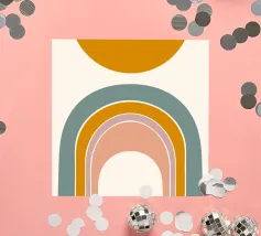 Il design stilizzato del sole e dell'arcobaleno crea un legame armonioso tra natura e arte astratta. Le linee chiare e la composizione equilibrata conferiscono al motivo un'eleganza moderna che si adatta a diversi spazi abitativi.